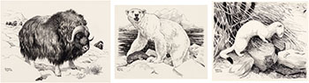 Three Works: Musk Ox (#0158), Polar Bear (#0154), Ermine (#0147)