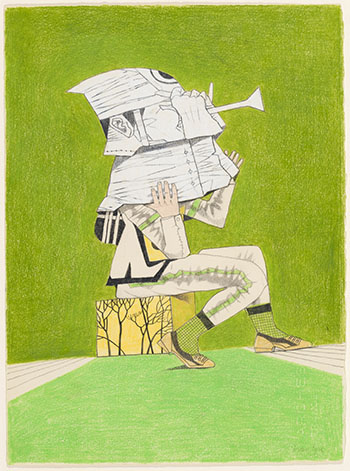 ink, graphite and pencil crayon on paper