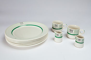 HBC Dinnerware, Green Stripe Design (#00469) and HBC Ridgways Plates (#00165)