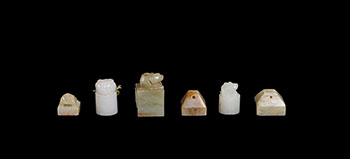 A Group of Six Chinese Jade Carved Miniature Seals, 19th/20th Century
