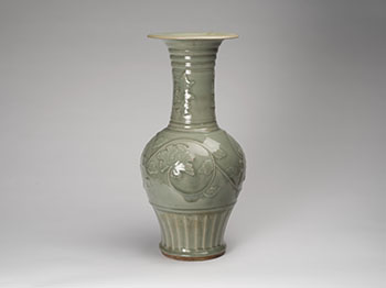 A Chinese Longquan Celadon Moulded 'Peony' Vase, 16th/17th Century