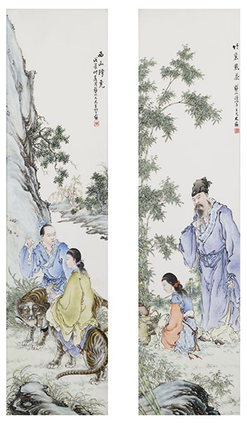A Pair of Rare and Important Chinese Famille Rose 'Figural' Panels, 1928