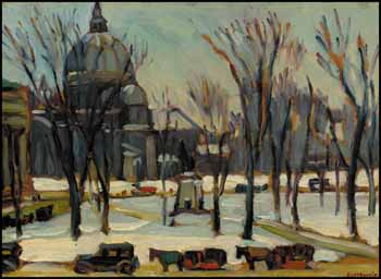 Kathleen Moir Morris was born in Montreal in 1893 and her artwork is a reflection of the province of Quebec, which she so deeply admired. Morris enrolled at the Art Association of Montreal (which later became the Montreal Museum of Fine Arts) from circa 1906 to 1917. It was during this educational period that she studied under established Canadian painter William Brymner, and during the summers she embarked on sketching trips with Maurice Cullen and Robert Pilot. Morris found her greatest inspiration in her natural surroundings, painting en plein air. Although she was born with a nervous disorder that affected with her speech and movement, her enthusiasm for painting was irrepressible.