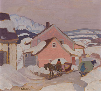 Albert Henry Robinson was born in 1881 in Hamilton, Ontario. Initially self-taught, he worked as an illustrator for The Hamilton Times from 1901 - 1903. He then attended the Hamilton Art School, where he was taught by the important teacher and impressionist painter John Sloan Gordon. Gordon had trained at the Académie Julian in Paris, and was considered a pioneer teacher in Canadian art education. Robinson would follow his lead and travel to Paris to attend the Académie Julian, where he would train under William Bouguereau in 1903. This was followed by further training at the École des beaux-arts. Robinson then traveled in Normandy and Corsica, painting with the British painter Thomas William Marshall and meeting the famed Canadian painter W. Blair Bruce. He suffered a bought of typhoid in 1905, which forced his return to Canada, where he was given a position at the Hamilton Art School with his old teacher, John Gordon. It was near Hamilton that he began to paint the landscape of Canada in oil, but his move to Montreal in 1908 and his subsequent fascination with the life of the people of the province of Quebec would define his work. In Quebec he met William Brymner and Maurice Cullen, and in 1909 would begin to show with the Royal Canadian Academy, being elected to associate membership in 1911 and full member in 1920. He met A.Y. Jackson in 1910, and traveled to France with him in 1911. He contributed to the Canadian War Memorials, painting scenes of shipbuilding and wartime activity in harbours. Jackson and Robinson painted together frequently after World War I, visiting the sketching locations now made famous by their works: St-Tite-des-Caps, Baie-St-Paul, various regions of the St. Lawrence River and the Laurentians. They were lifelong sketching companions. Robinson is also associated with other Quebec painters such as Clarence Gagnon, Randolph Hewton and Edwin Holgate, with whom he sketched and exhibited. Robinson’s work is defined by a particular affection for snow, hence white is a predominate colour in his palette. His works lean towards impressionism and are idyllic and pastoral, reflecting his deep love of Quebec and its people. He was an exceedingly fine colourist, and his methods include a characteristic square brush-stroke, almost pointillist in application, with which he was able to convey a sense of dappled light and joyousness.