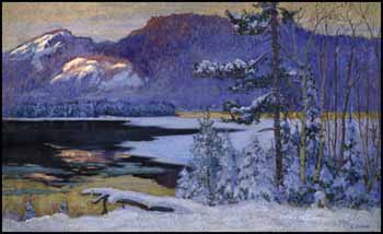 After 1923, the Laurentians were Cullen’s predominant theme. He built a cabin at Lac Tremblant on the Cache River in the early 1920s as a base for his Laurentian sketching trips, and scenes of this river were one of his great enduring subjects. Cullen loved winter, and felt that the forests became truly majestic when cloaked in snow.