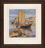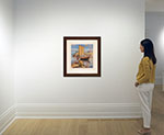 The York boat was a vessel used by the Hudson’s Bay Company to carry cargo through the inland lakes and waterways of Rupert’s Land, trading the lightness of a birchbark canoe for the size and durability of a full-sized wooden hull. Named after the HBC’s headquarters of York Factory on Hudson Bay and typically piloted by Métis boatmen, the York boat was fast and efficient, propelling up to six tonnes of cargo by either oars or, on open water, a square sail that doubled as a tent at camp. By the 1920s, in the face of steamships and rail lines, the boats fell out of favour, though the Norway House Cree Nation still holds boat races at the Treaty and York Boat Days festival every August. Walter J. Phillips here renders the boats in brilliant colours as they ripple through the glassy lake. He would return to the subject in a dramatic form a few years later with his stormy York Boat on Lake Winnipeg (1931), one of the artist’s most celebrated woodcut prints.