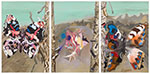 This work is a triptych consisting of three panels each measuring 60 x 40 inches.