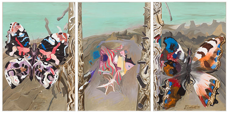 Jack Leonard Shadbolt was a remarkable figure in the art history of British Columbia. Born in the United Kingdom, Shadbolt came to Canada as a child, settling with his family in Victoria. An accomplished artist from early in his career, Shadbolt taught at the Vancouver School of Decorative and Applied Arts (now Emily Carr University of Art + Design). Shadbolt was drawn to the natural world but his work was often strongly abstracted. He would begin studies of nature quite directly but as his work developed, the immediate connection to the environment was altered by the artist’s interest in abstraction. Shadbolt was a keen observer of nature and his interest in the butterfly—a creature that undergoes fascinating transformations through its life cycle—was long-standing.