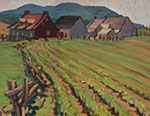In the summer of 1933, McCarthy embarked with friends on her first major painting trip outside of Ontario. Camping, exploring and painting in the Gatineau villages of Quebec, they traveled as far north as the town of Mont-Laurier and east to Baie-Saint-Paul, and later voyaged along the south shore to the Gaspé Peninsula. Exhibiting the principles of rhythm and design she had learned from Hortense Gordon earlier that year, St. Tite des Caps is a lively and harmonious rendering of Quebec farmland. The rhythmic, loose forms of the crop lines are well balanced by the solid structures and foreshortened fence. A novel yet restrained palette reveals the distinctive character of McCarthy’s early artistic voice. Works from the artist’s formative period are extremely rare, and this charming sketch is a gem.
