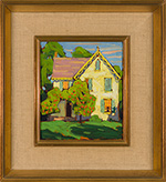 The enthusiasm Harris felt for depicting Canada resulted in the exploration of many subjects, representing various facets of the country’s identity. These works include a small but important series done around his family’s summer home at Kempenfelt Bay, Lake Simcoe. House Near Allandale, Ontario, a charming and bright portrait of a Victorian-era home, is a brilliant representative of this rare and intriguing component of Harris’s catalogue, a series that contrasts with his more well-known urban scenes and wilderness landscapes.