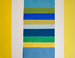 Hale’s review perceived the exhibition as a survey of abstraction: “It is as if Bush has taken up every gauntlet thrown down in recent years in the lists of abstract painting—hard edge to painterly, flat to textural, movement to iconography—and the whole Josef Albers color scale as well.… He has met every challenge, it seems to me, astonishingly well, and on his own terms.” Two Yellows avoids texture altogether but makes a bold statement in the pure power of colour and line, and while the format is entirely different, the close side-by-side placement of colour delightfully recalls Albers. Yet where Albers is exact, Bush is easygoing.