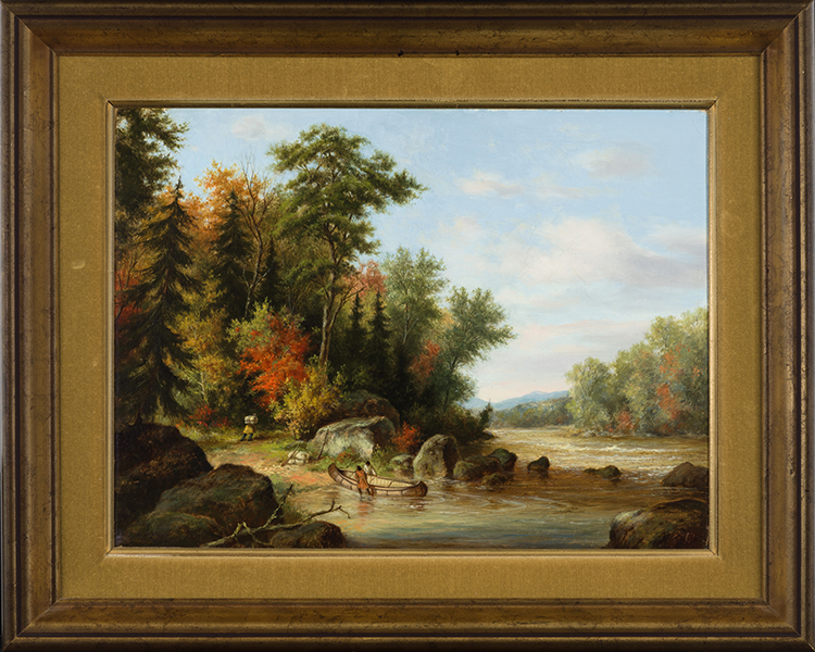 La vie des Autochtones du Québec intéressait Cornelius Krieghoff au plus haut point. Cet immigrant a séjourné au Canada et aux États-Unis, mais la plupart de ses œuvres se concentrent sur la vie des « habitants » et des peuples autochtones du Québec. Indian Portage, qui a appartenu au premier ministre du Québec Joseph-Adélard Godbout (1892-1956), est un excellent exemple du sens aigu de l’observation de Krieghoff.