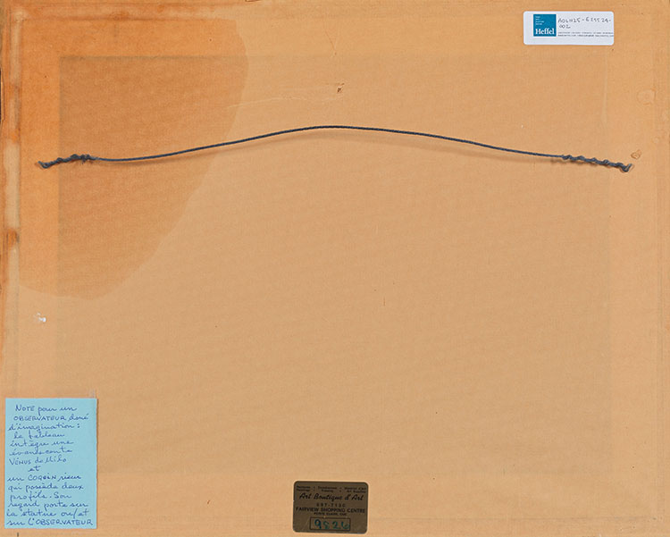 The original owner of the painting studied with Jack Lorimer Gray, under Arthur Lismer, at the School of Art and Design of Montreal, in the early 1940s.