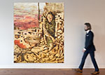 After graduation Lukacs moved to Berlin in the fall of 1986. It was here where he created a body of work that would define his reputation and provoke intense critical debate: his skinhead paintings. “Angeli Co” (2006) revisits themes that defined his infamous skinhead series—power, masculinity, and vulnerability—within the context of modern warfare. The soldier emerging from rubble echoes the shaved heads and militarized bodies of Lukacs’ Berlin works, but the erotic provocation has given way to somber ambiguity. Where his earlier paintings fetishized authoritarian aesthetics, this piece critiques their consequences, setting a lone figure against a landscape of ruin.