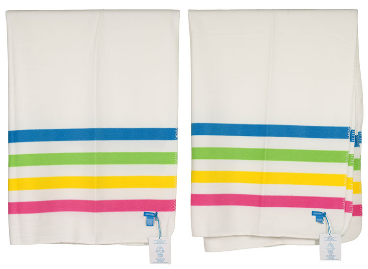 Please note: each blanket measures 50 x 70 inches.Created for a Hudson's Bay Company Foundation fundraising initiative. The Buyer is hereby advised to read fully the Priority Special Terms & Conditions of Business pertaining to the Hudson’s Bay Company series of online auction sales, as well as the Terms and Conditions of Business and our Catalogue Terms. The auction preview will be held at Heffel Toronto from January 19 - 23, by appointment only. The Buyer is responsible for ascertaining the condition of this lot. All items will be sold “as is.” Condition reports and additional images are not available. Please note that Heffel's standard Buyer's Premium applies to each lot in the Hudson’s Bay Company auction. The Buyer’s Premium is the amount paid by the Buyer to the Auction House on the purchase of a lot, which is calculated on the Hammer Price as follows: a rate of 25% of the Hammer Price of the Lot up to and including $25,000; plus 20% on the part of the Hammer Price over $25,000, plus applicable Sales Tax.The Buyer is responsible for all pickup and shipping costs and arrangements. All lots will be sold “as is, where is” and will be deemed as released in Ontario and HST will be applied.