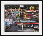Edward Burtynsky’s Breezewood, Pennsylvania is included in his acclaimed Oil series, a body of work that interrogates humanity’s profound dependence on petroleum and its imprint on modern life. The photograph depicts a cluttered roadside intersection saturated with commercial signage—Exxon, McDonald’s, Shell, and other corporate symbols—creating a visual cacophony that speaks to both consumer desire and environmental consequence. Rendered in Burtynsky’s signature large format, the work overwhelms the viewer with its density of detail, its scale mirroring the pervasive reach of oil-based culture.