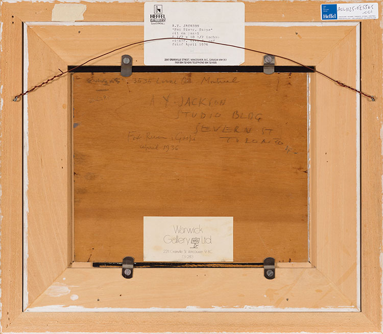 In the spring of 1936, A.Y. Jackson traveled to Fox River, located in the scenic eastern region of the Gaspé Peninsula, for his customary sketching journey during the transition from winter to spring. The weather proved so turbulent, marked by storms, rain, and dense fog, that Jackson was largely confined to drawing indoors, making this oil sketch a rare product of that trip. Frustrated by the conditions, he wrote in a letter, “It’s been a lousy spring…still don’t know if I am going to get anything worthwhile.” Interestingly, Jacques Cartier, the area’s first recorded visitor over four centuries earlier, had also lamented the region’s harsh climate, describing “a contrary winde, with great fogges and stormes.”