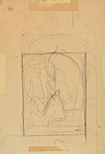 This drawing is a study for the 1891 canvas titled "Enfant casqué gardant un trésor," collection of the Art Gallery of Ontario. On verso, there is a sketch for a painting representing Saint Charles Borromée - now destroyed - painted for the Lachenaie church.