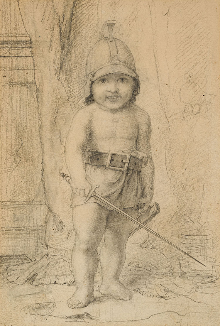 Étude pour Enfant casqué gardant un trésor