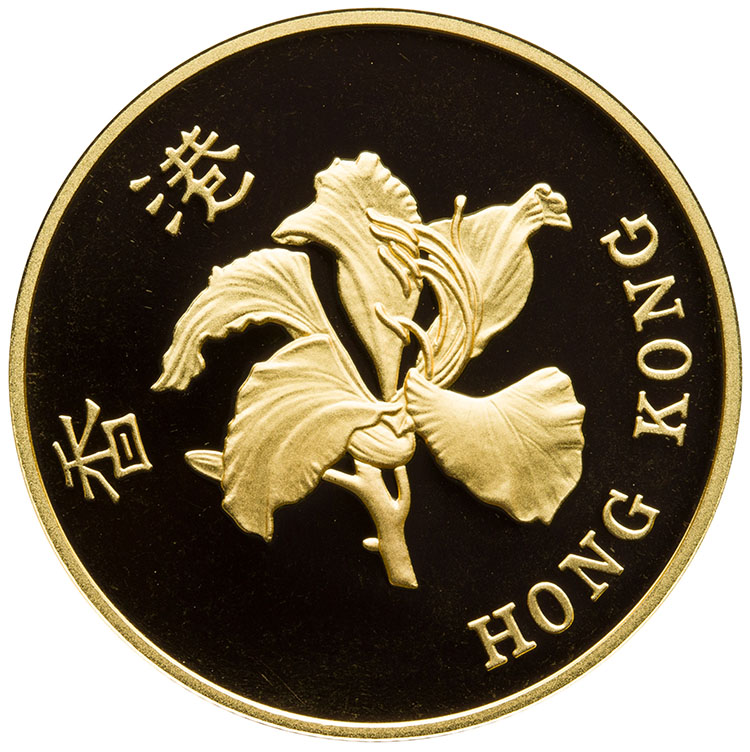 Ensemble de quatre pièces d'or de 400 yuans, « 30e anniversaire de la fondation de la RPC »Valeur nominale : 1000 dollarsTirage : 97,000Année : 1997Titre : .917Composition : orÉpreuve : épreuvePoids réel en or : 0.4708 ozCatalogue Krause: KM71