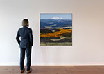 Likewise, an important facet of Eyre’s landscapes is how they seem to collapse the passage of time even as their spatial relationships expand, as frequently evidenced in their treatment of the seasons. Here, the fading of one annual cycle into another is marked by several distinct bands: burnt late-summer grasses in the foreground change to autumnal oranges, before the lowlands sweep away into a winter coolness and eventually the snow-dusted far peak. A ribbon-like path of grey-blue foliage loops and flows through the composition, stitching together these amplified spatial and temporal relationships and providing a narrative path through the scene. With its contrasting feelings of intimacy and immensity, invitation and suspense, High Valley takes on an almost sublime quality, a propulsive meditation on the infinite capacity of the landscape and the promises that lie beyond its borders.